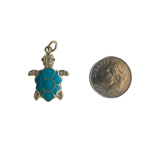 Turtle Charm With Rhinestones & Enamel